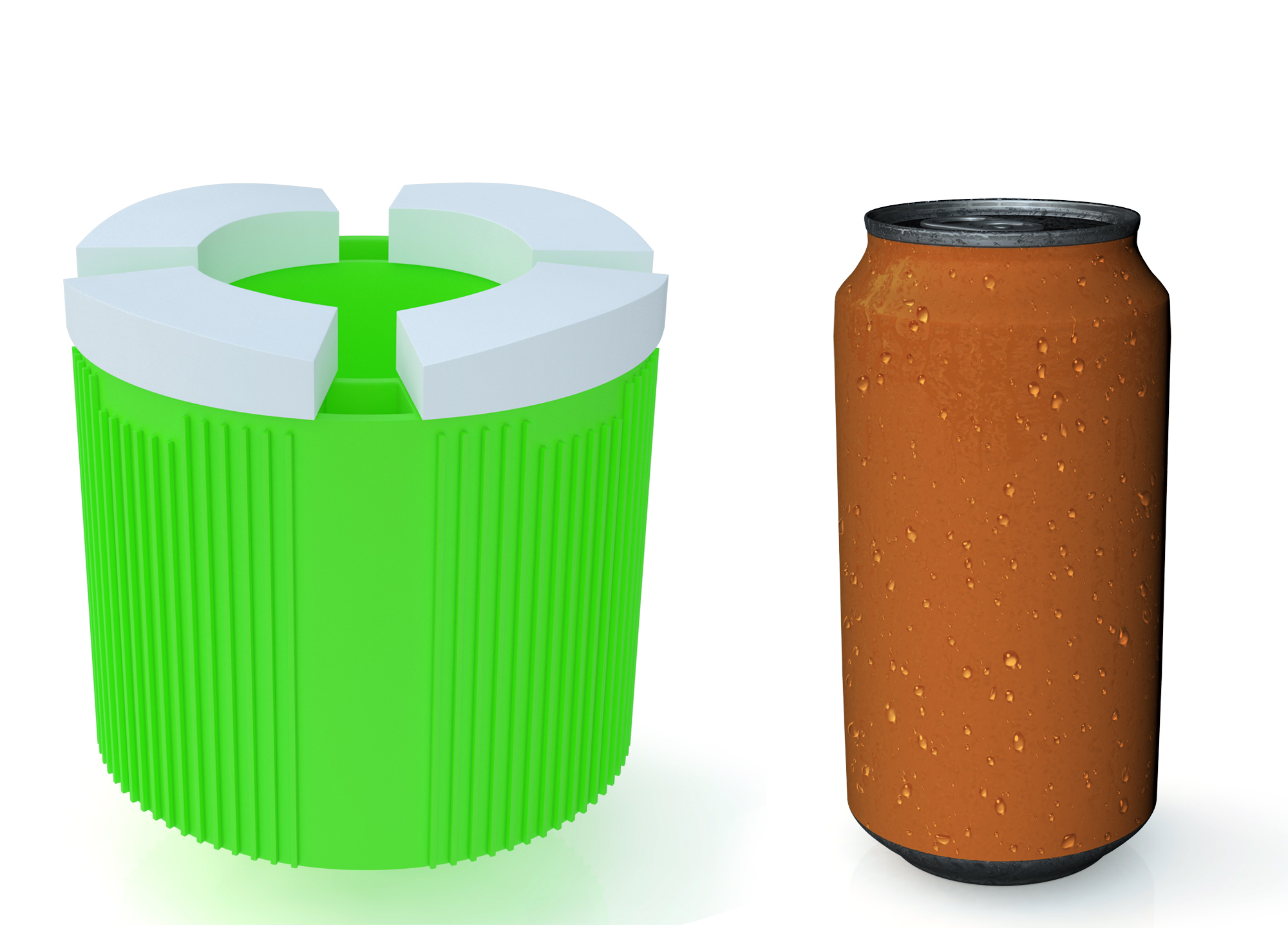 Cold beverages in cans and small bottles are often consumed indoors or while participating in outdoor activities like driving, camping, or simply relaxing in the park. We often need to pre-chill our beverages or use coolers which can be time-consuming and cumbersome. Storing cans and bottles in the refrigerator can also take up valuable food storage space. A simple and effective way to cool drinks, especially on those hot summer days, will allow people cool those refreshing drinks on demand.