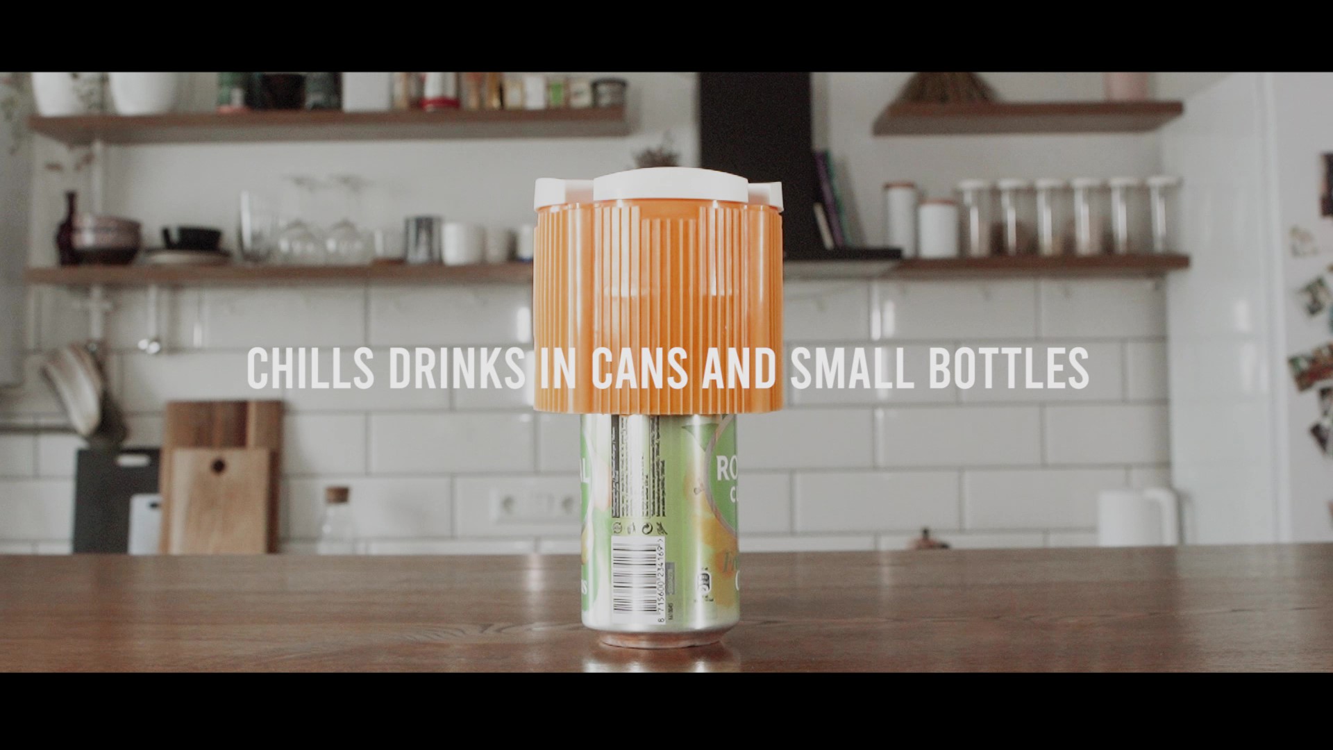 The Chill Sleeve is a patented cooler that attaches to the 340-mL to 355-mL can size and small glass or plastic bottles of approximately 2.6-inch diameter. Once attached it takes as little as 10 minutes to cool the beverage and keeps the beverage cold for up to an hour. Our drink cooler can be stored / pre-chilled in a freezer, or instantly chilled using crystals (urea pellets-not included in product packaging) prior to attaching to a can or bottle.